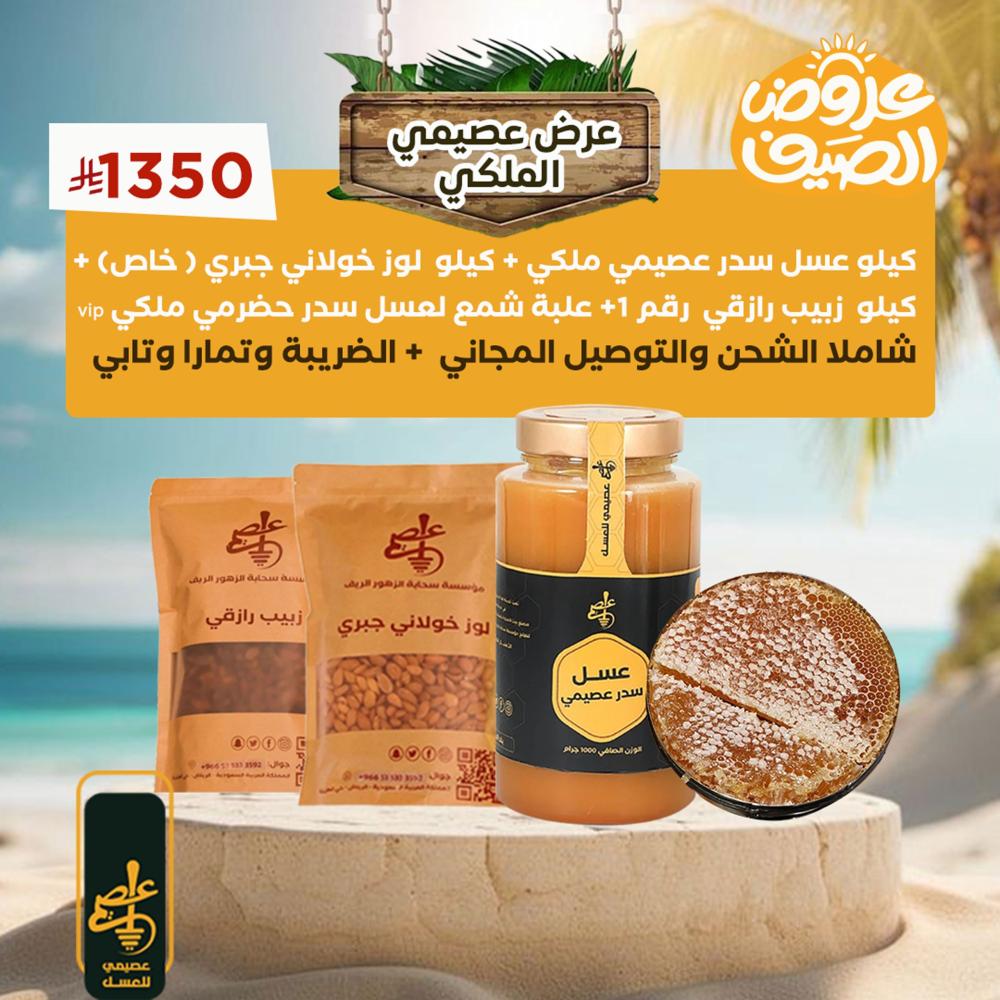 استمتع بأفضل المكونات الفاخرة من الطبيعة مع "عرض عصيمي الملكي" من متجر عسل السدر العصيمي. هذا العرض يضم مجموعة مختارة بعناية من المنتجات التي تتميز بالجودة العالية والفوائد الصحية الاستثنائية.