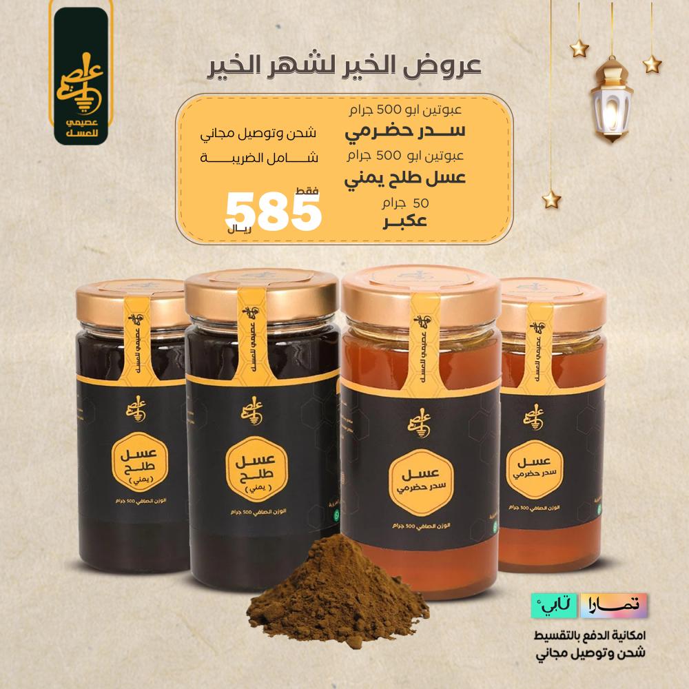 احصلوا الآن على عرض عبوتين سدر حضرمي وطلح يمني مع عكبر واستمتعوا بأجود المنتجات الطبيعية بأسعار تنافسية.